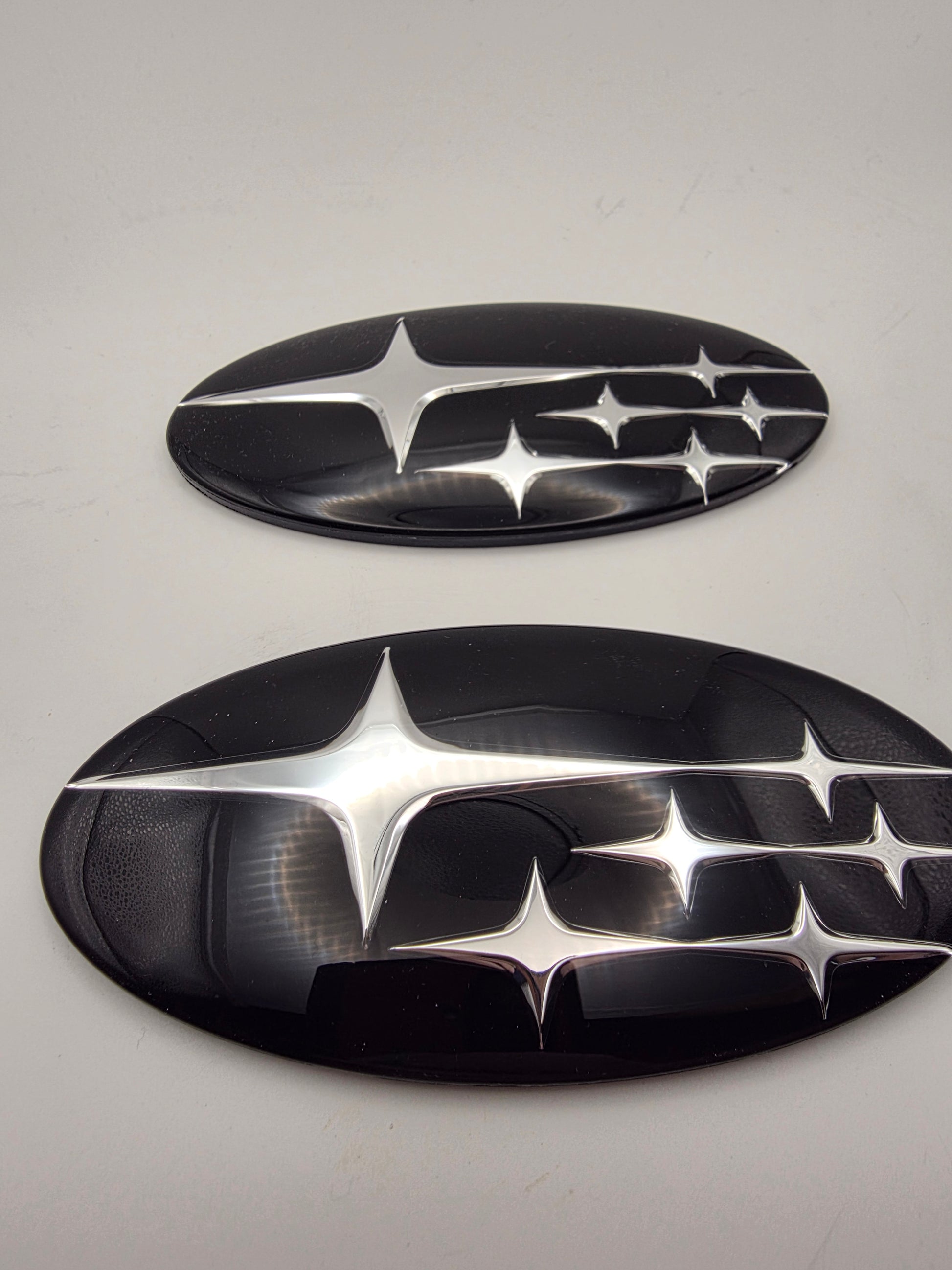 We refinish genuine OEM Subaru emblems using professional automotive materials and processes. No vinyl overlays. No stick-on covers. No shortcuts. Just properly restored OEM parts finished to a true show-quality standard.
